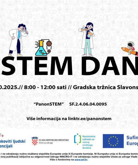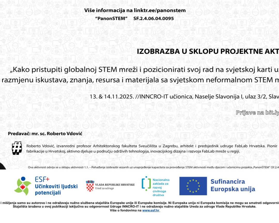 IZOBRAZBA U SKLOPU PROJEKTA „PANONSTEM“ 13. i 14. studenoga 2025. INNCRO-IT učionica, Naselje Slavonija I, ulaz...